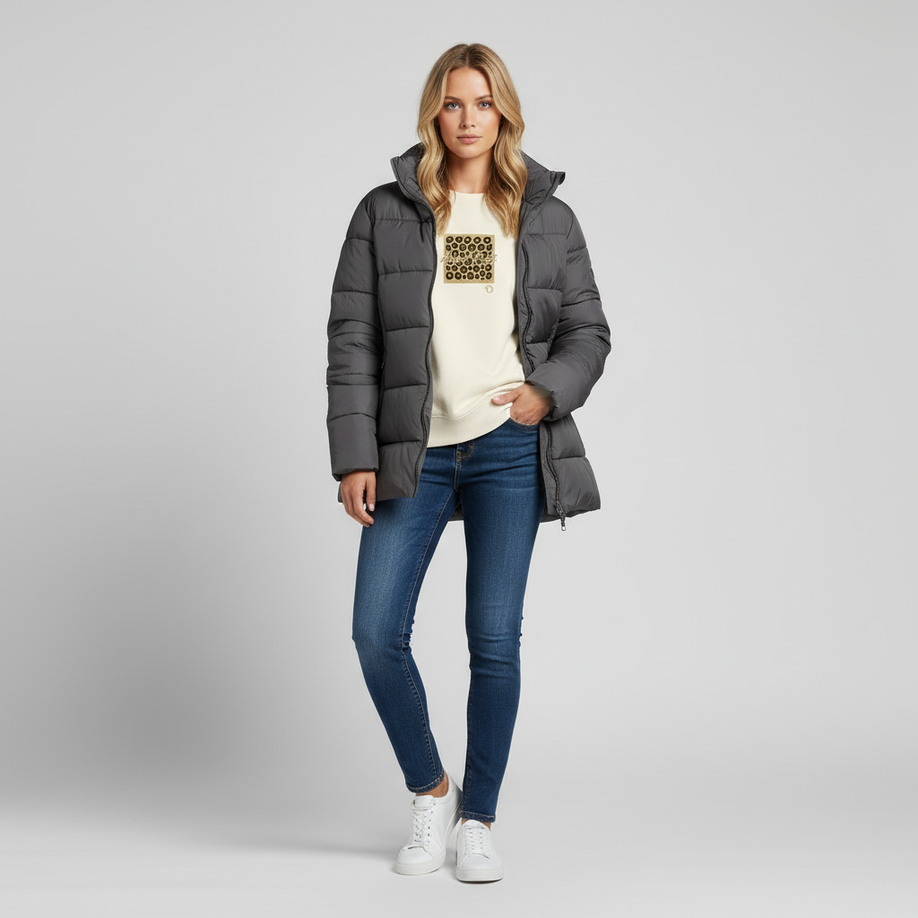 - Ribete de 1x1 en el cuello, puño de manga y dobladillo inferior